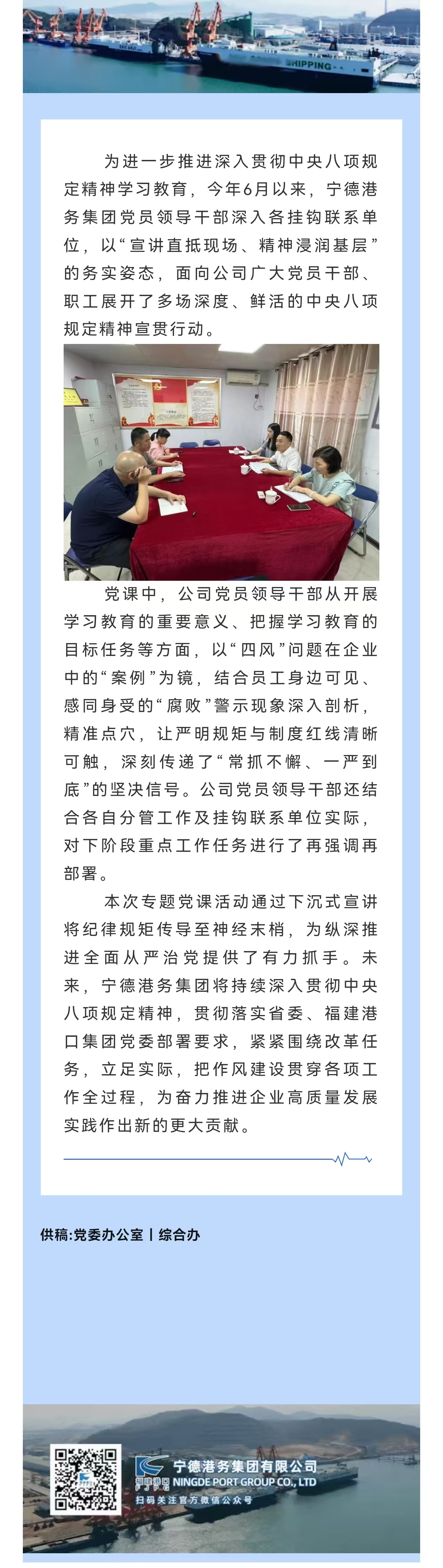 [深入貫徹中央八項規(guī)定精神學習教育丨寧德港務(wù)集團黨員領(lǐng)導(dǎo)干部深入基層開展專題黨課 - 寧德港務(wù)集團有限公司]