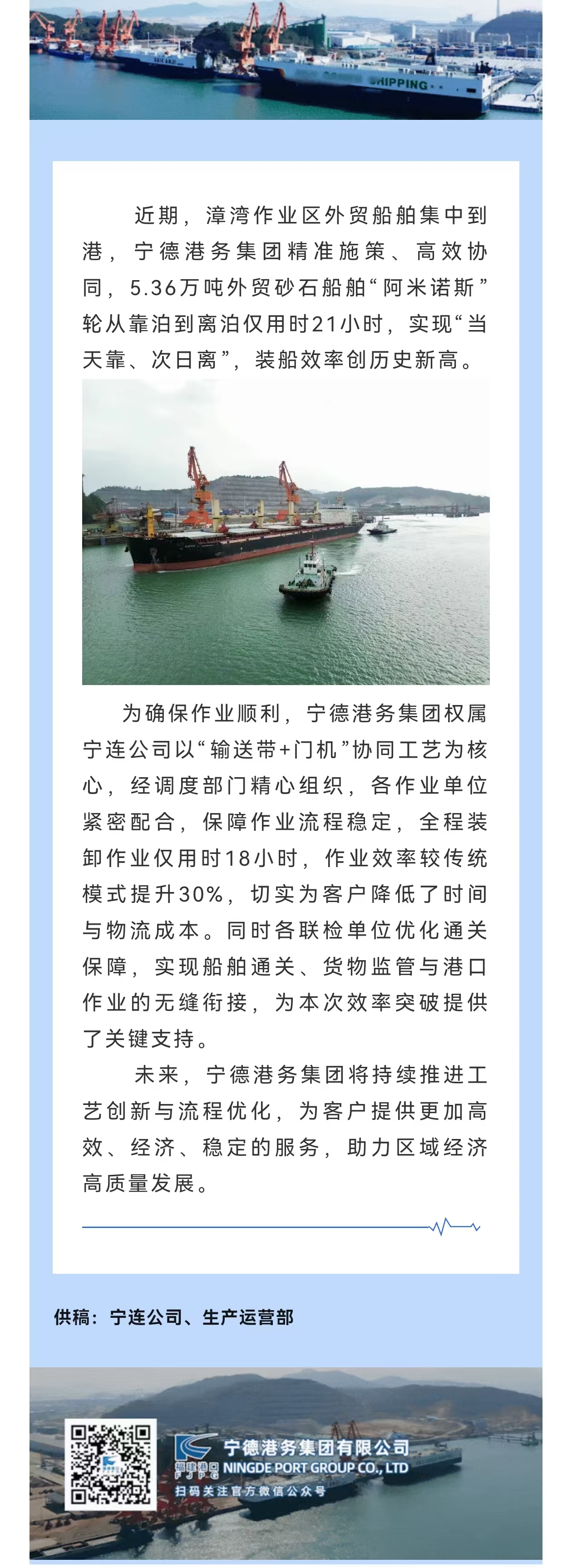 [寧德港務(wù)創(chuàng)造新紀(jì)錄:5萬噸巨輪實(shí)現(xiàn)一晝夜靠離 - 寧德港務(wù)集團(tuán)有限公司]